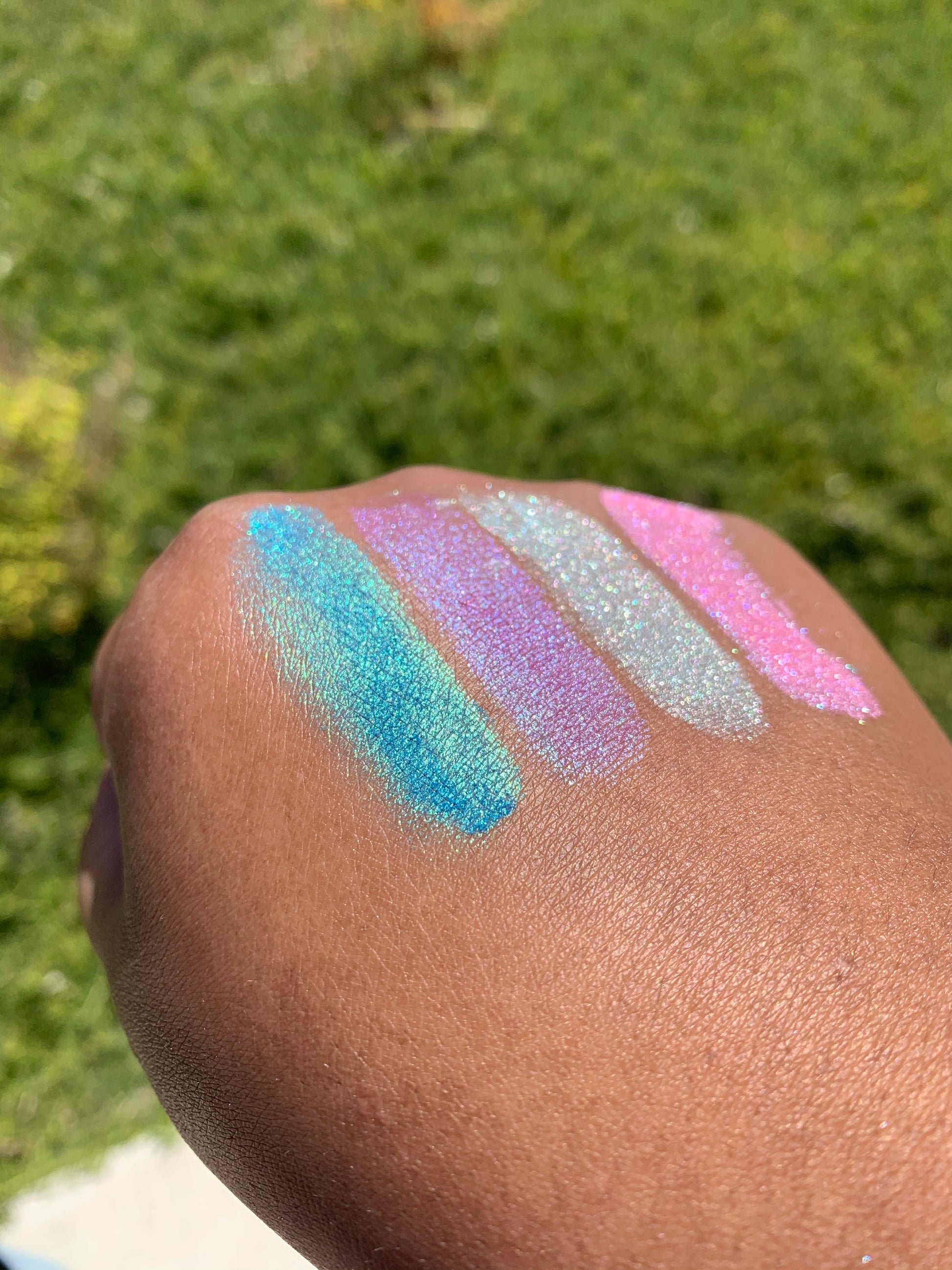 This stunning lavender shade is one of 4 shadows in our new “Pastels” collection. A pearlescent light purple shade with blue undertone glitter reflects. Purple is a safe universal shade, meaning its flattering on any skin tone. Feel free to apply it on your lids with your finger or a makeup brush. If you're daring, use it as a highlighter. You can definitely dress these pigments up or down.