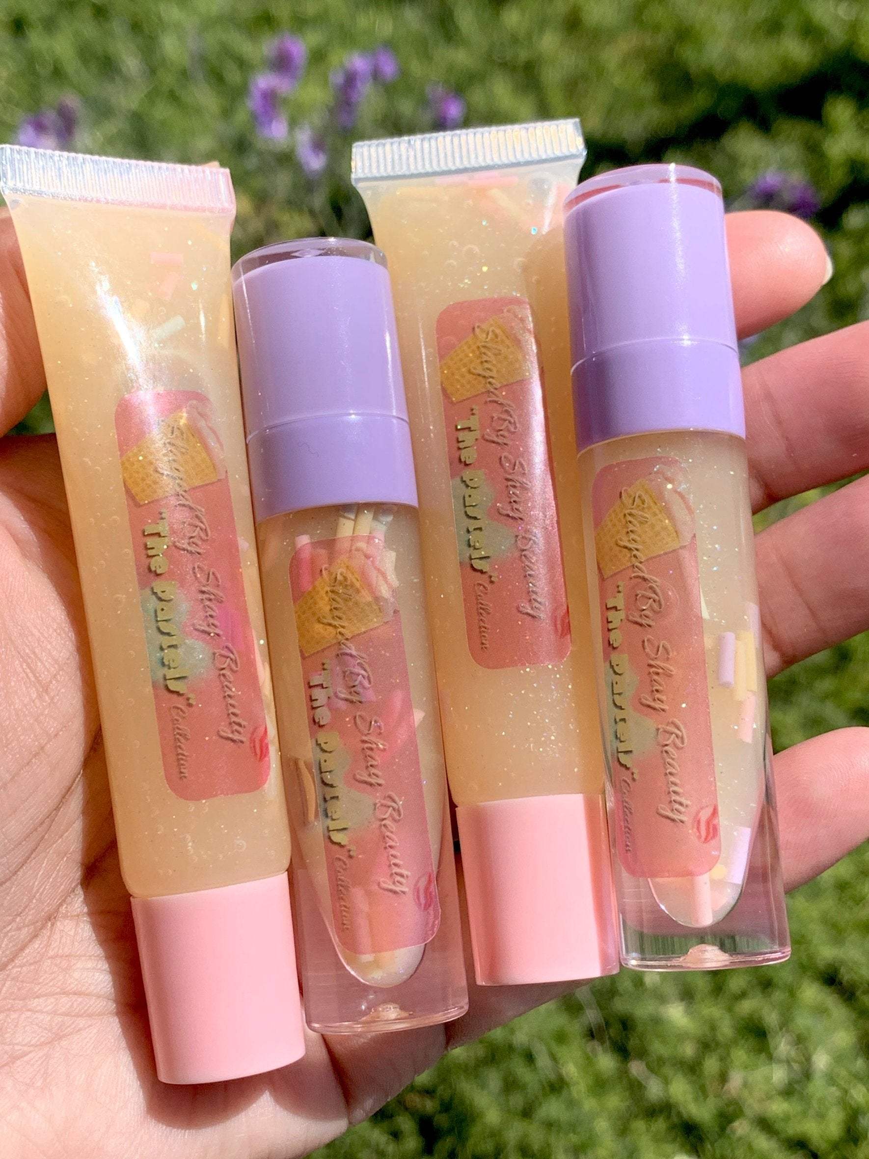 Moisturizing clear gloss with sweet hints of a vanilla cupcake, cake batter & confetti cake scents. Traces of glitter.