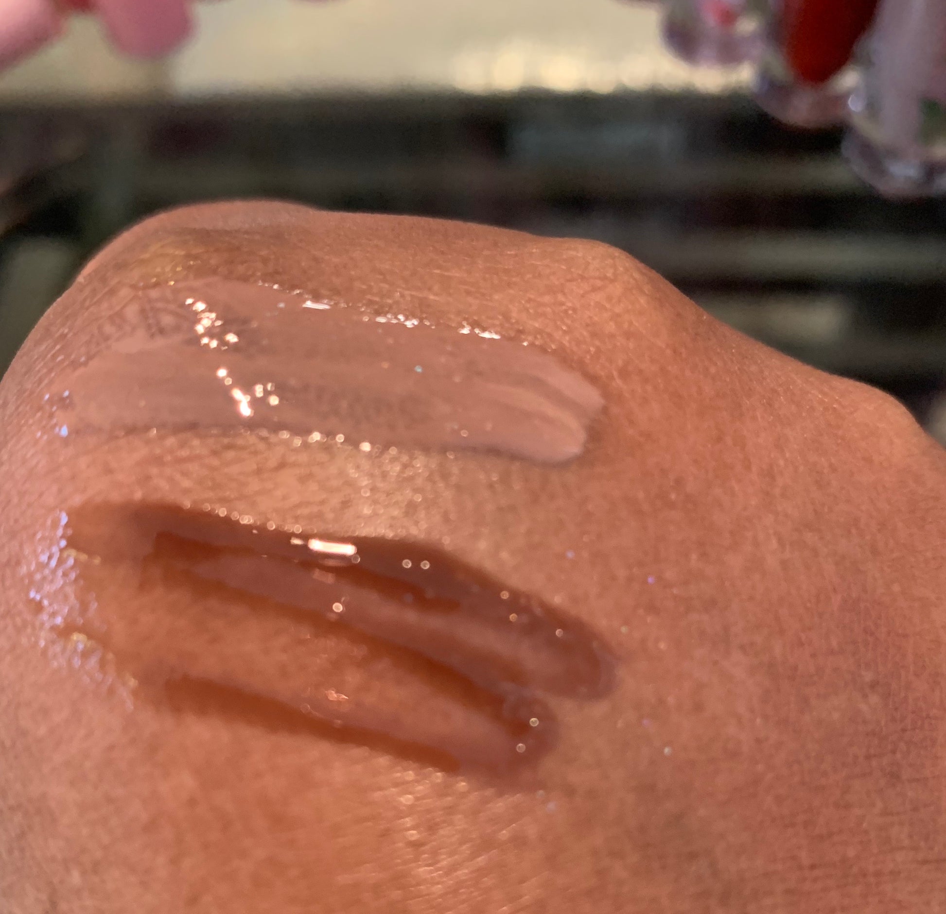 This nude chocolate colored gloss is perfect for anyone, especially for more melanated skin tones. Is not only flavored, but scented like a milky way candy bar and moisturizing on lips. π«