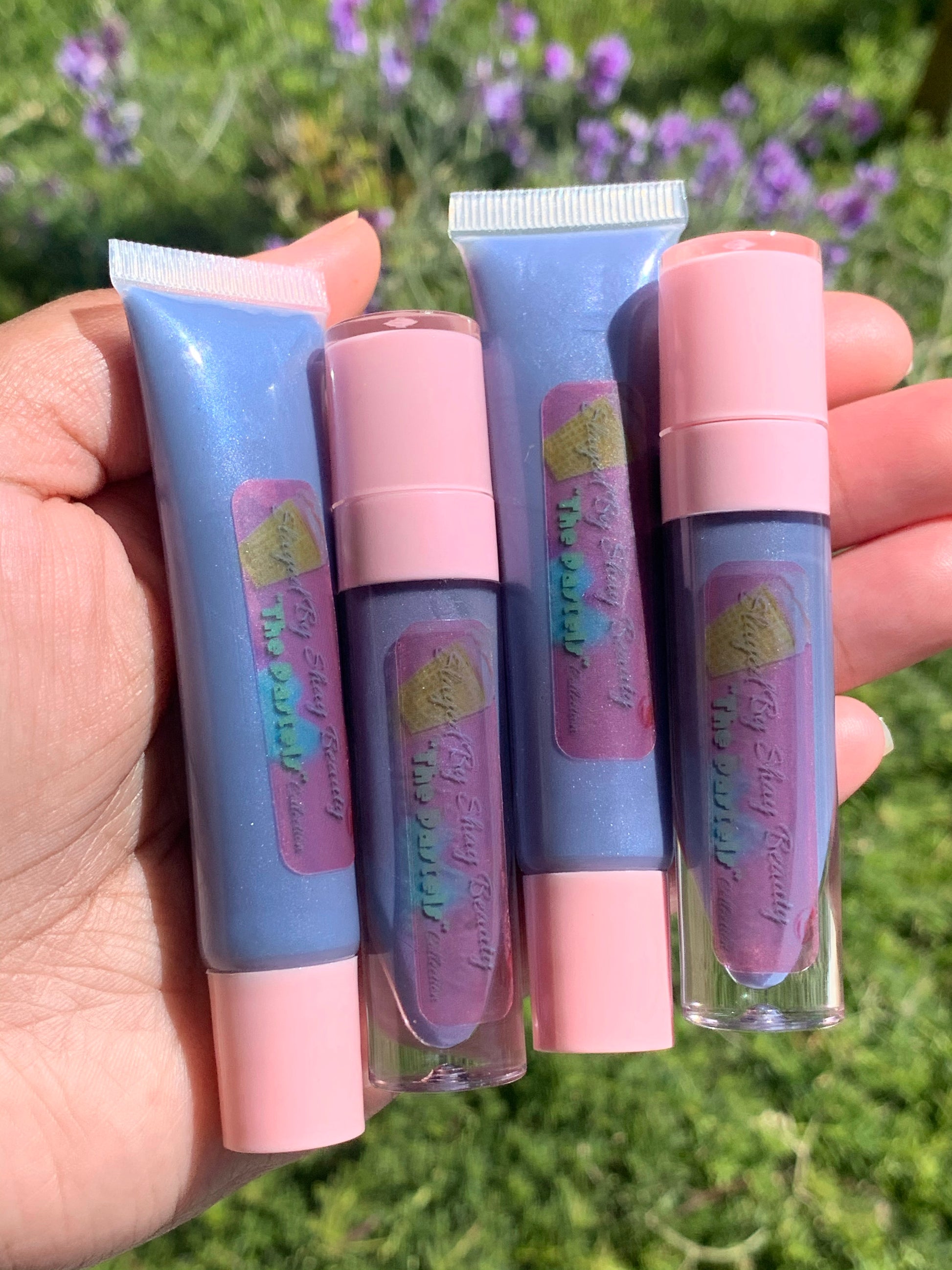 Designed for the Ultimate blue Lover! Bluish/purple gloss.Moisturizing pigmented gloss with yummy scents of cotton candy. High traces of crushed mica pigments & glitter. Wear this alone with a liner or as a glitzy topper.