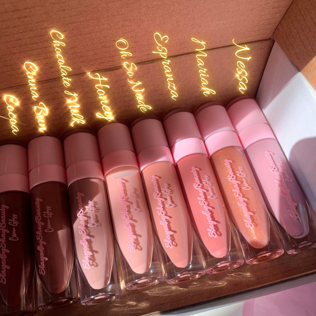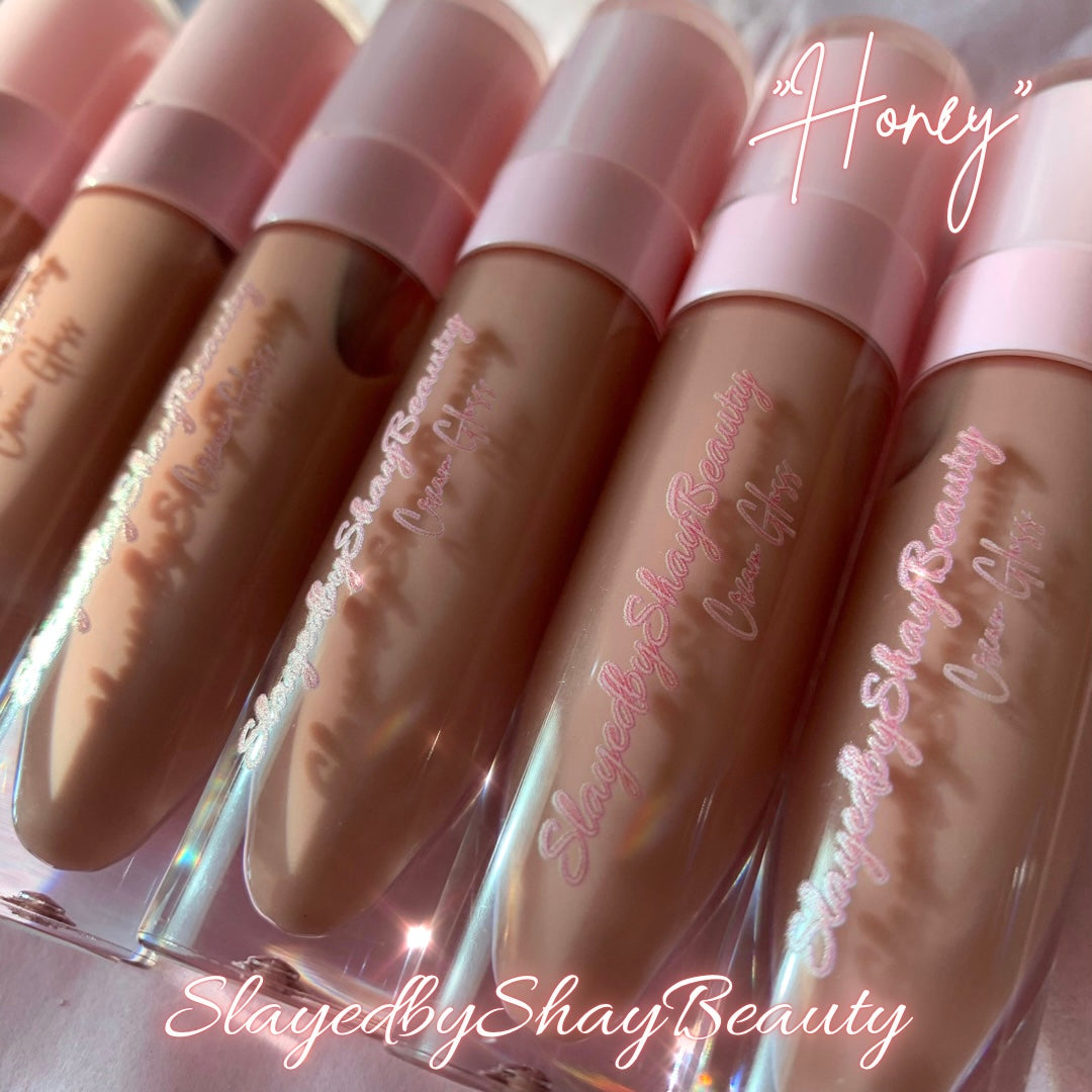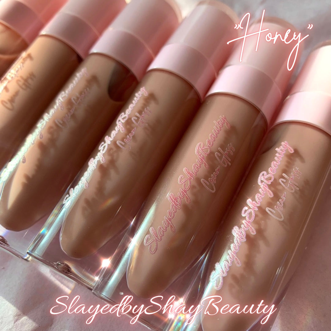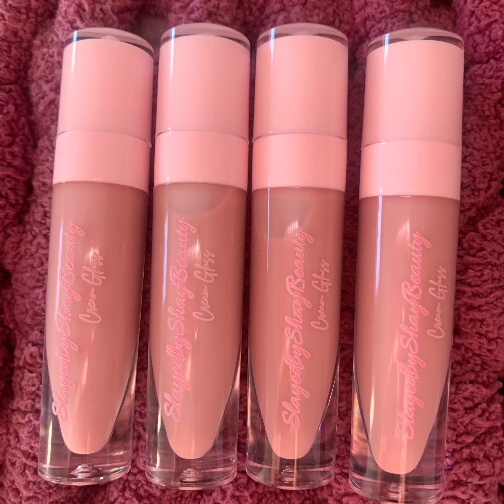 Light brownish Nude Gloss with peach undertones. This gloss is cake batter scented and flavored