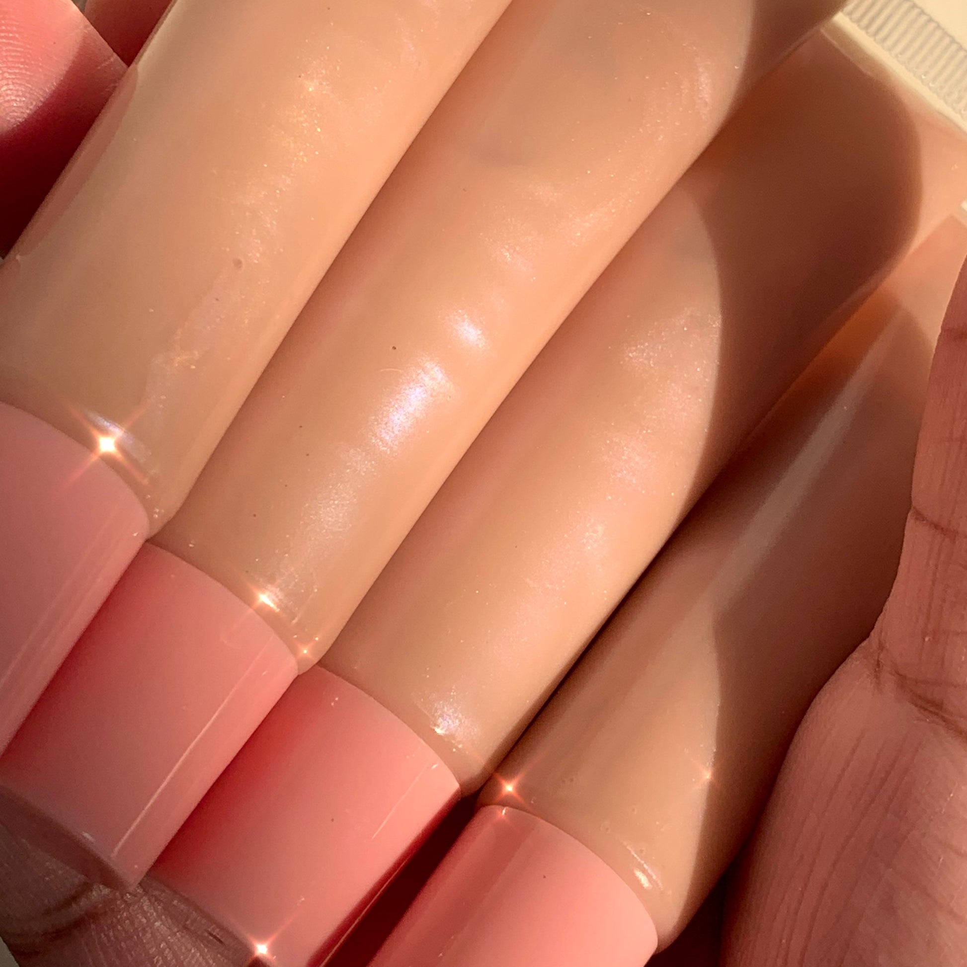 The Perfect pearl nude gloss with iridescent gold & pink mica undertones. This buttery gloss smells like fresh french vanilla ice cream with hints of cappuccino. Perfect worn alone with a brown liner or as a topper. Its definitely the star of the party.