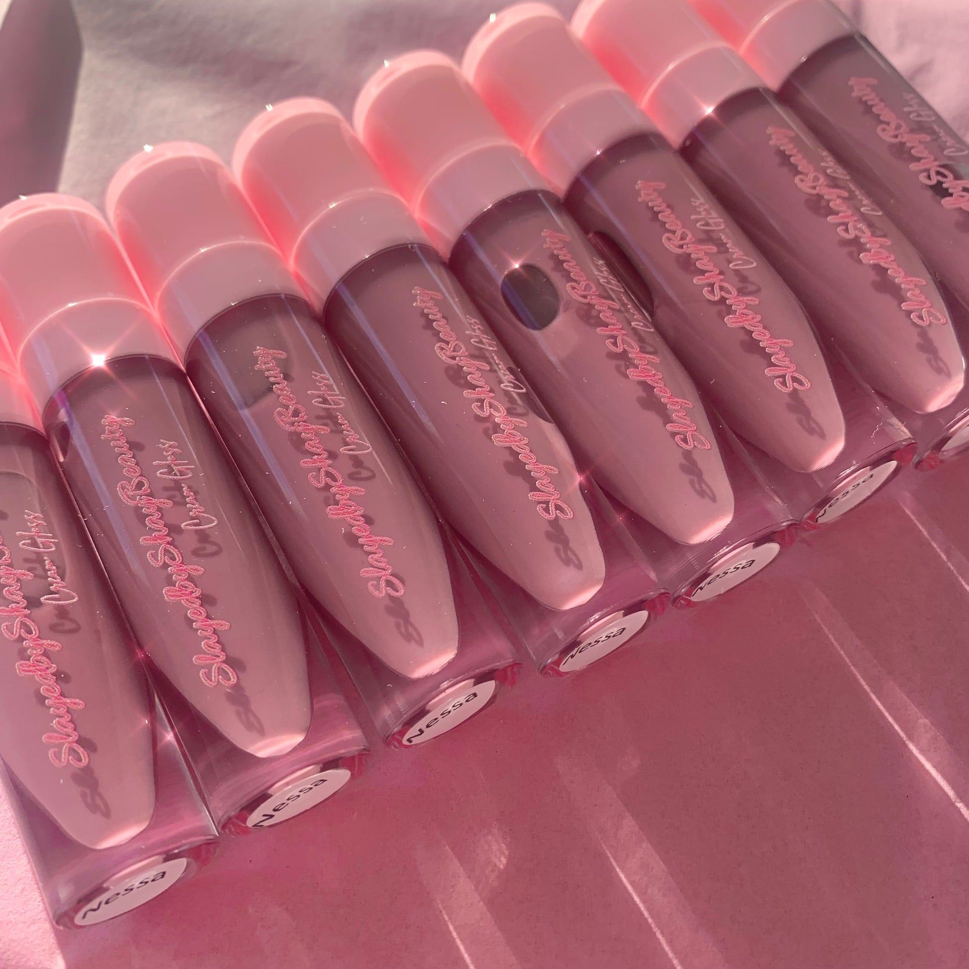 Lilac nude colored gloss that is scented and flavored with cake batterÂ